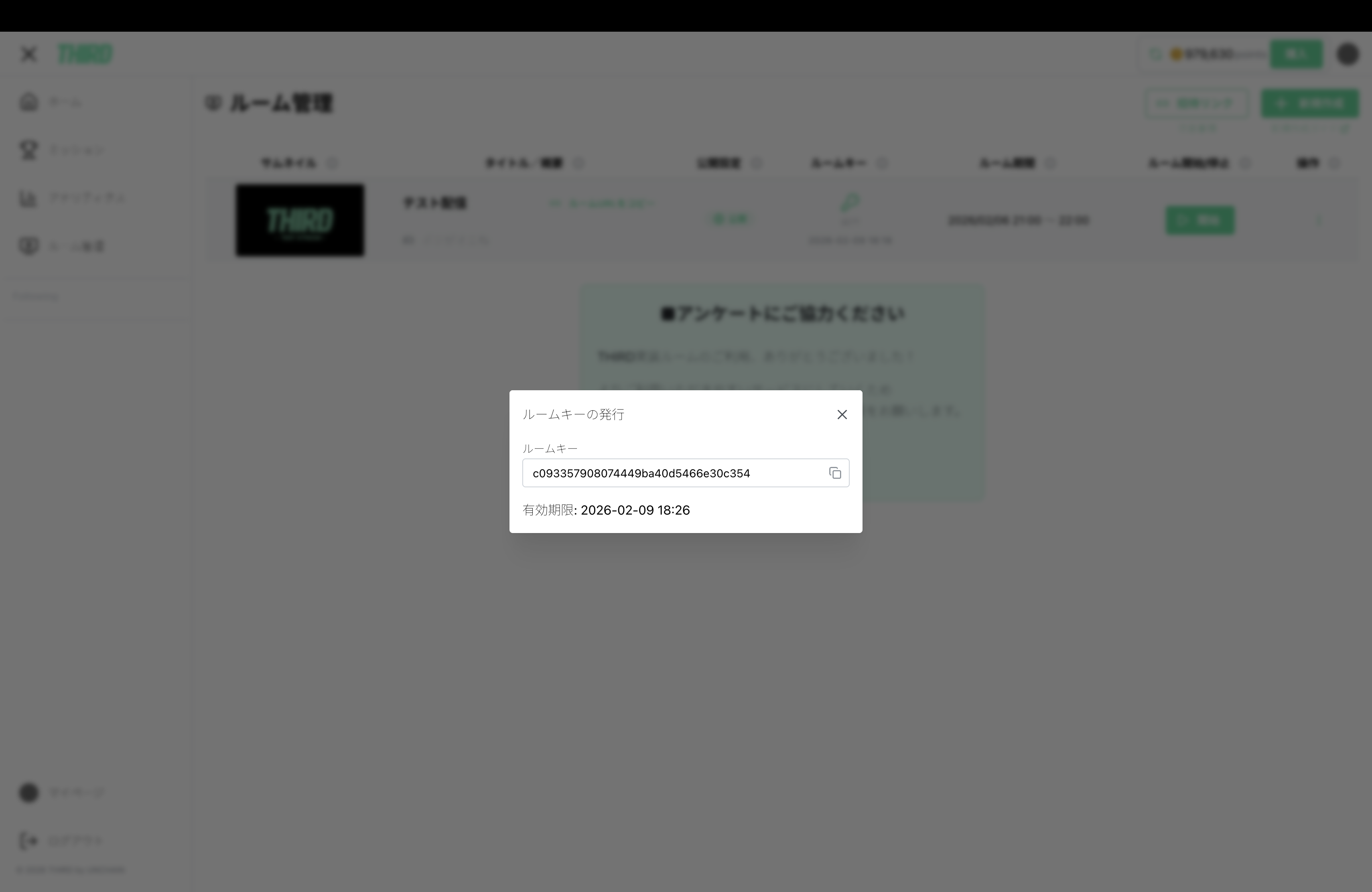 | ルームURL | THIRD上でのルームページURLとなります。 |