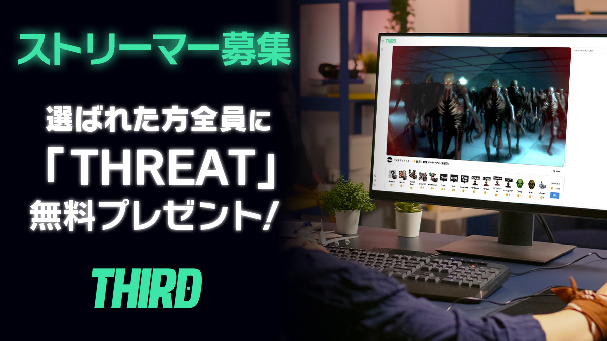 またストリーマーの皆様を対象にTHIRD拡大のための相互協力を行う「THIRD プロモーター」募集キャンペーンも同時に開催いたします。