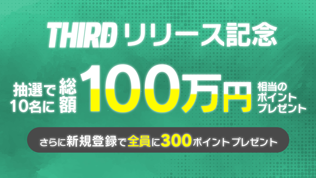 さらに9/30までのTHIRDへの新規登録で全員に300ポイントをプレゼントいたします。公式サイトからご登録ください。